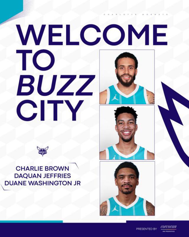 黄蜂宣布从三方交易中获得查理 - 布朗、杰弗里斯和小杜安 - 华盛顿,三轮选秀和现金补偿。事实上,他们已经完成了 1 换 只有詹姆斯被送出 - 纳吉的签约权。
