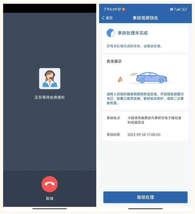 2024 年 5 月 1 日起,西安市全市及郊县发生的轻微交通事故,当事人可在“交管管理”中发生。 12123 " APP 选择事故视频快速一键报警,积极引导当事人做好安全防护、展示事故现场、指导取证,通过建立“线上会议”和实时远程处理。现场数据采集由警方远程完成,系统验证人、车、保险信息。警方核实交通事故后,完成责任认定。当事人会收到短信,推送电子责任认定,简化了当事人的事故处理操作,实现了轻微事故的快速赔偿。