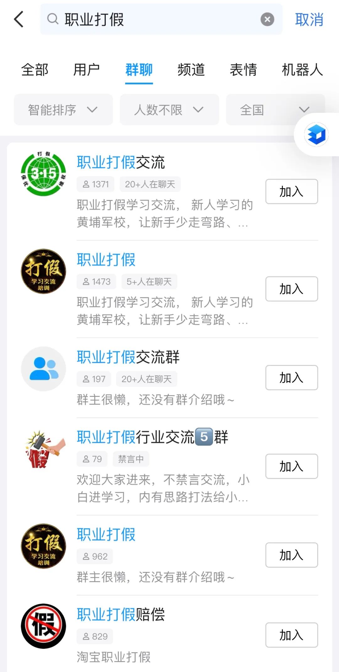 搜索QQ中的“职业打假”(图片 源 :QQ )
