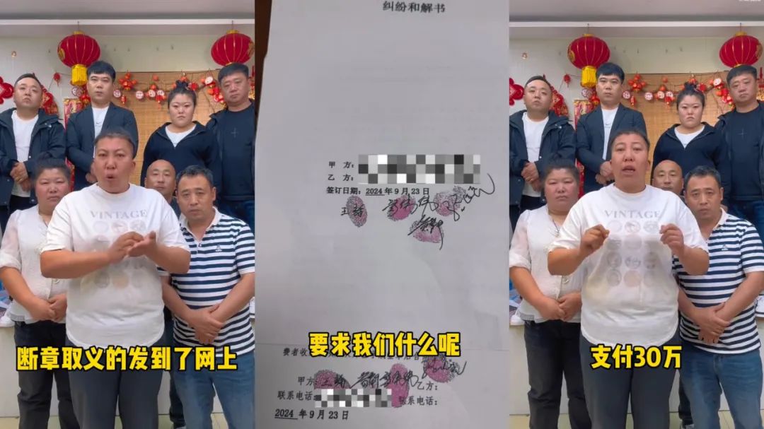 接受警方调解后,“东北雨姐”表示对方主动要求调解,于是双方互相道歉,互不追究责任。他们还安排对方吃饭住宿。没想到,第二天,对方恢复了偷录的视频,发布了“偏概全”,并发出纠纷调解书要求支付30万元。