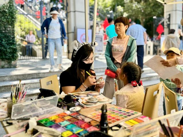 端庄典雅的梅花鹿,天真无邪的熊猫,霸气威武的老虎…下午 1 点,公园入口处的彩绘互动区早已排起了长队,不少游客在彩绘者的精彩装扮下成为自己喜爱的动物形象。