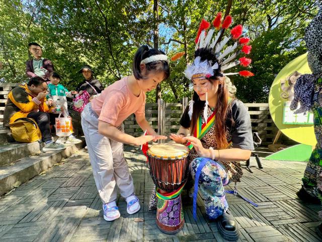 伴随着欢快的非洲鼓声,“部落精灵”们以灵动的舞步来到公园。在工作人员的热烈邀请下,游客们举起国旗,跟随旋律,享受不同的森林嘉年华。游客程倩带着家人从河南来体验森林旅游园活动。公园里喜气洋洋的节日气氛和树木的自然风光给她留下了深刻的印象。“非常热闹,环境也特别好,孩子们在这里装扮成各式各样的小动物,一家人可以一起踏青,玩得特别开心。”程倩笑着说。