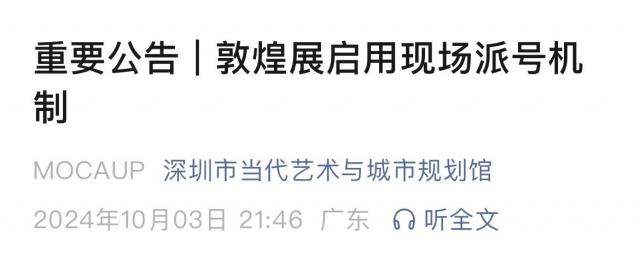 “敦煌展专属排队通道”领取号码