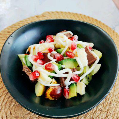 平时吃水果沙拉很久。方法很简单。把你喜欢的水果洗净,切成块,放入沙拉酱中混合。下次试着放一些法国布里奶酪。法国布里奶酪质地细腻,奶香味浓郁。有了水果沙拉酱,吃不到盐味,只有香味!