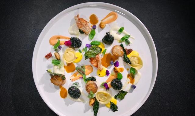 小哥哥做了一个盘面,结合了顶级料理,试图用艳丽的外表来获得加分。