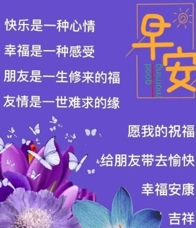 美好的一天是早晨,美好的心是朋友。感恩短信,让我们每天见面,给我们带来温暖和情感。我珍惜,我喜欢,一路幸福。早上好!