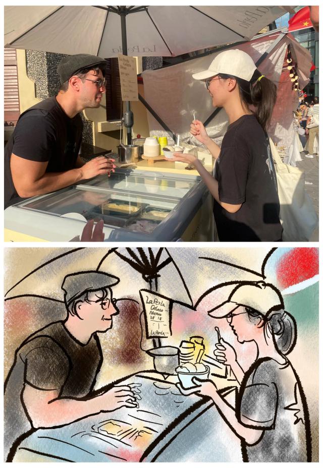 思南公馆实在是太好逛了,从意大利帅哥手里接过冰淇淋的妹子饶有兴趣地端详手中的美味。