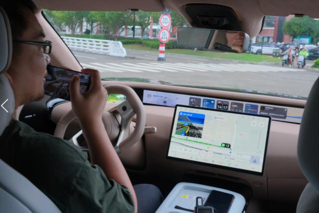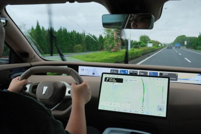 但在实际感受中,阿维塔 07 表现还是很不错的,前面的车和车的距离保持得很好,但是当前面有障碍车或者慢车的时候,也可以及时变道超车。在驾驶过程中,我们还遇到了行人过马路的情况,阿维塔 07 在 10 当距离超过一米时,进行了减速制停,干涉动作仍然很“老司机”。
