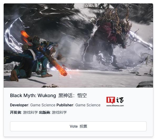 游戏《黑神话:悟空》当选最佳视觉设计"。