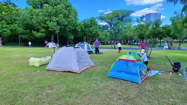 目前,大宁公园在船坞湖港南侧的草原和罗马广场西侧的一些草原上开放了一个帐篷区。公园里有乔灌木,河水荡漾,竹影斑驳,草茂盛...这个隐藏在市中心的“绿肺”也迎来了这个假期露营的“黄金时期”。