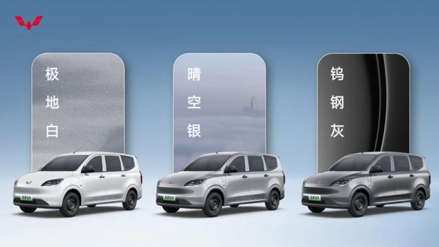 从外观上看,宏光纯电版有更新的造型设计,前脸圆润,外观可爱,车身超越 4.5 米,轴距有 2.85 米,并提供了极地白、晴空银、钨钢灰三种颜色,车尾造型较为垂直,以保证车内空间最大化。