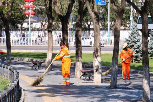 在这个国庆节,尹振萍和她的同事们用劳动和汗水诠释着自己的责任,用坚持和奉献来保护延庆的整洁。