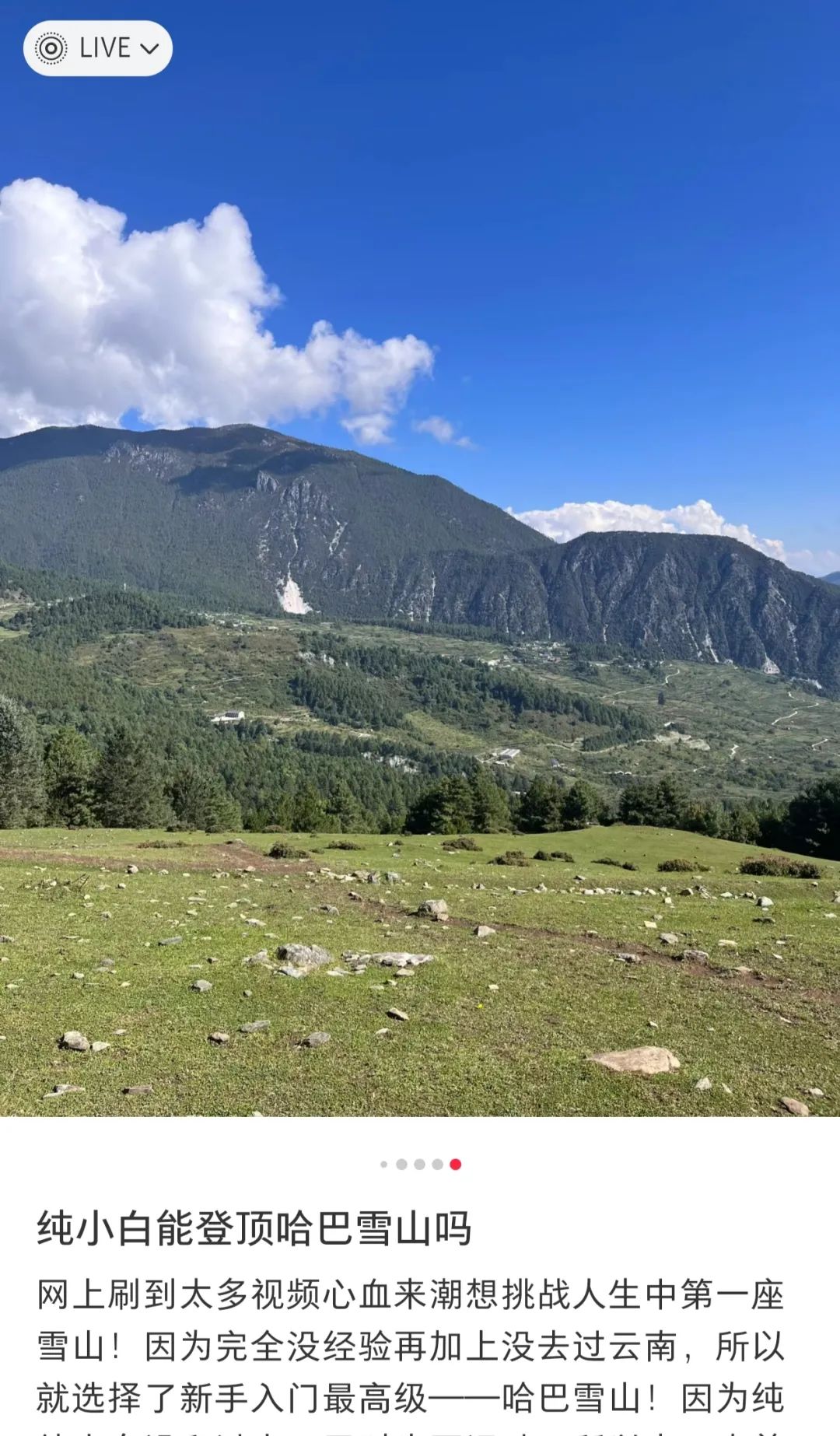 一座来回大约14公里的哈巴雪山,虽然爬山的人很多,但并非每个人都能爬到山顶。