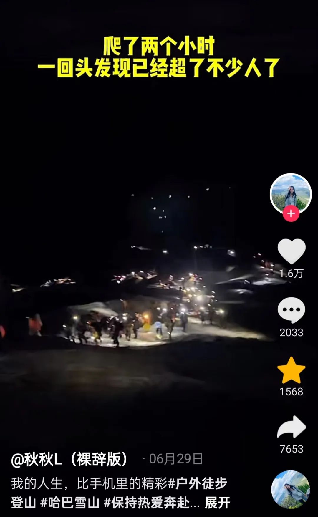 有很多人被哈巴雪山吸引,彼此的大灯可以在雪坡上点亮一条人工银河。