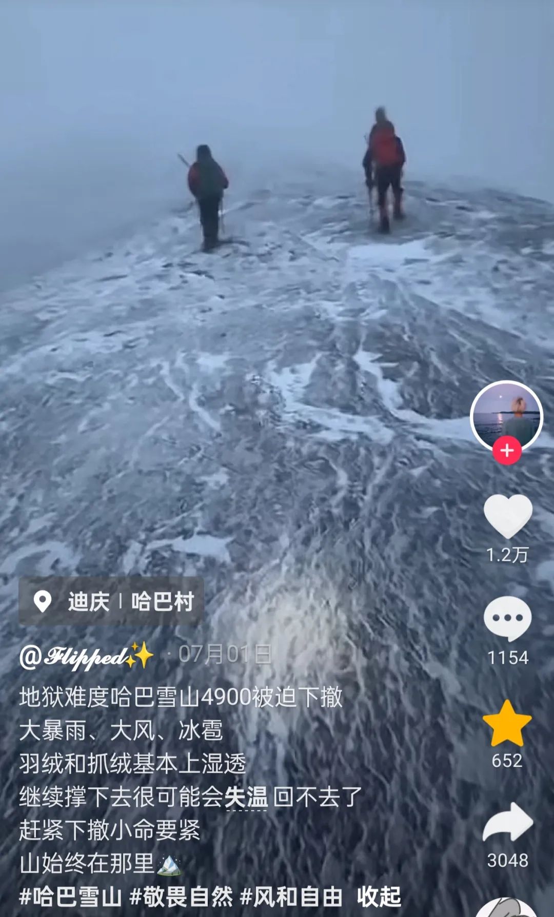 对于所有爬哈巴雪山的视频热评,最常见的就是反复解构“母亲,人生就是荒野”这句话。