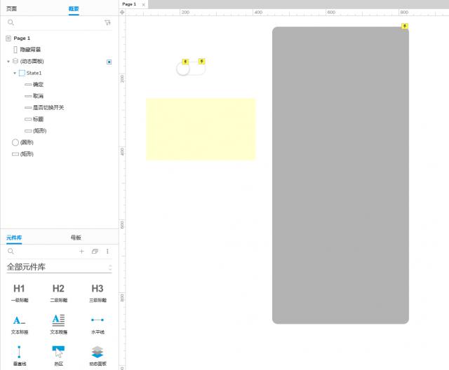 1. 选择圆形元件,在交互窗格点击新建交互,选择点击时,“渐进” " 200 "ms显示屏蔽 "逐渐" " 200 "ms显示弹窗的二次确认。