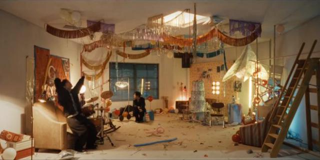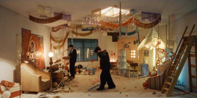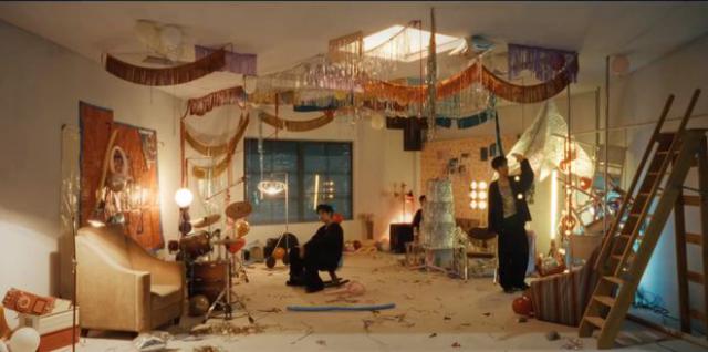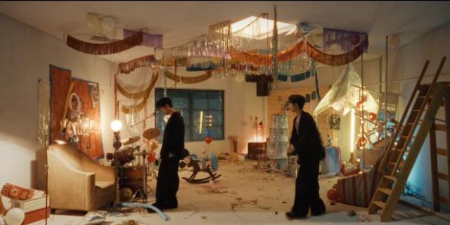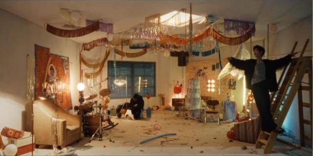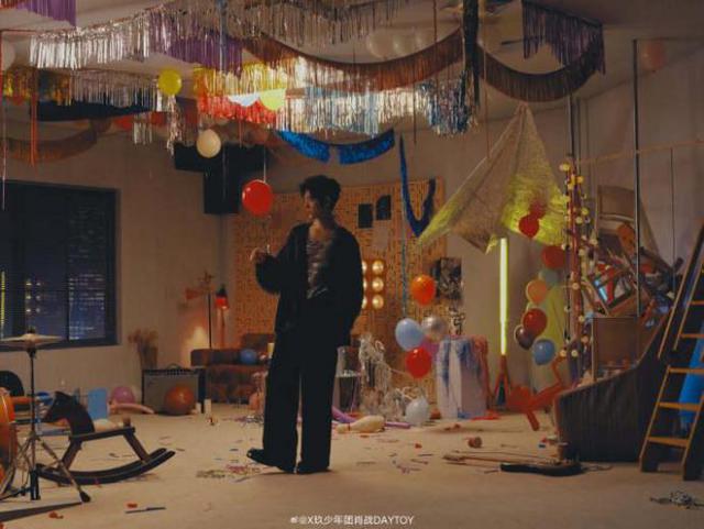 肖战还随意喊着架子鼓,踩着汽球,然后拖出被遗忘在身边的木马摇椅,坐在上面玩耍,这也给人一种童心未泯的感觉,特别有活力。而这种自由的态度,更是展现了他自由自在的生活态度,让人看着觉得特别舒服。