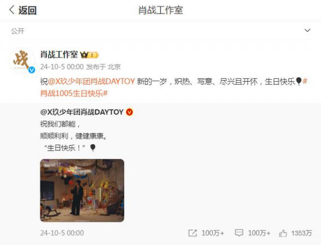 10 月 5 日是肖战的 33 岁生日,当天0:00,他还在个人社交媒体上分享了一张生日现场照片,并为此写道:祝大家一切顺利健康。“生日快乐!”随后,肖恩肖工作室也分享了宣传:“新的一岁,炎热、写意、快乐、幸福,生日快乐”也受到了网友的高度关注。