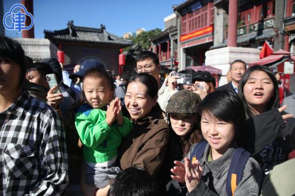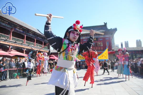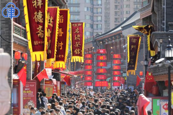 国庆节期间,古文化街景区人头攒动,丰富多彩的民间活动吸引了来自世界各地的游客的目光。
