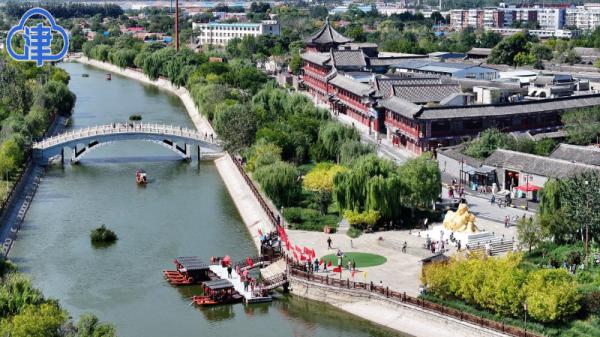 国庆节,天津杨柳青古城美不胜收。古城古朴典雅,青砖黛瓦之间映衬着古桥流水。