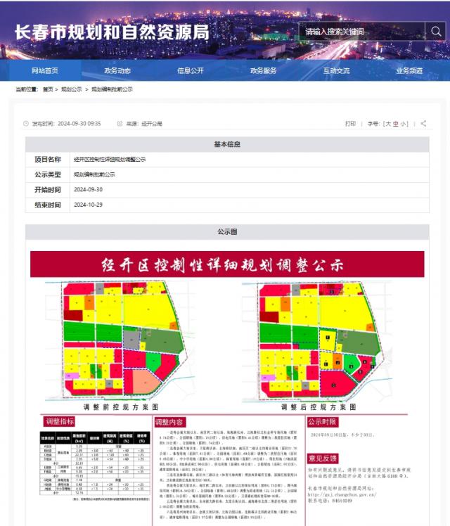 最近,长春市规划与自然资源局网站发布了《经济开发区控制性详细规划调整公告》——