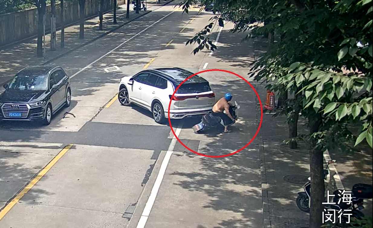 送货员黄某多次“被撞”。所有这些图片都是 闵行警察上海 提供