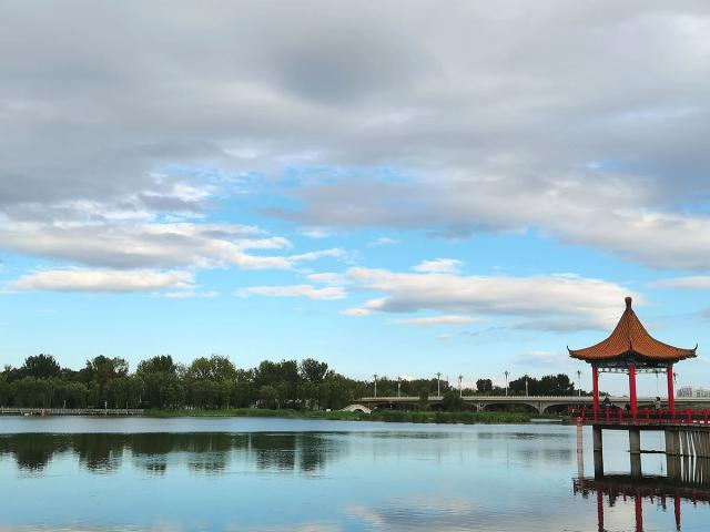 减河公园的水天一色。