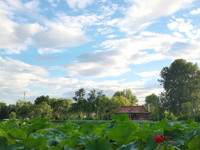 绿荷,蓝天,白云,顺义公园。