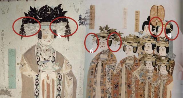 这种复杂的钗戴法可以体现在敦煌壁画中很多供养人的画像中,比如榆林窟第 19 洞穴中描绘的五代凉国夫人画像有八个(四对)金钗和几个宝宝;而敦煌曹家族供养人画像则有 6、4 支不等。发夹和发夹初期也有不同的说法,发夹多为单股,发夹为双股,随后发夹也逐渐成为女性头饰的通称。