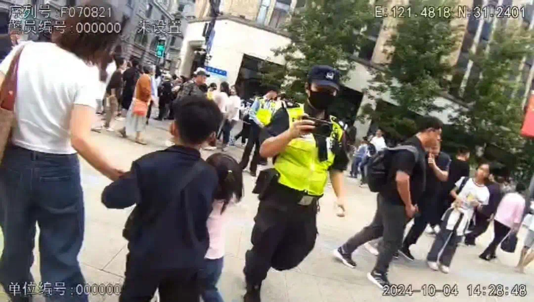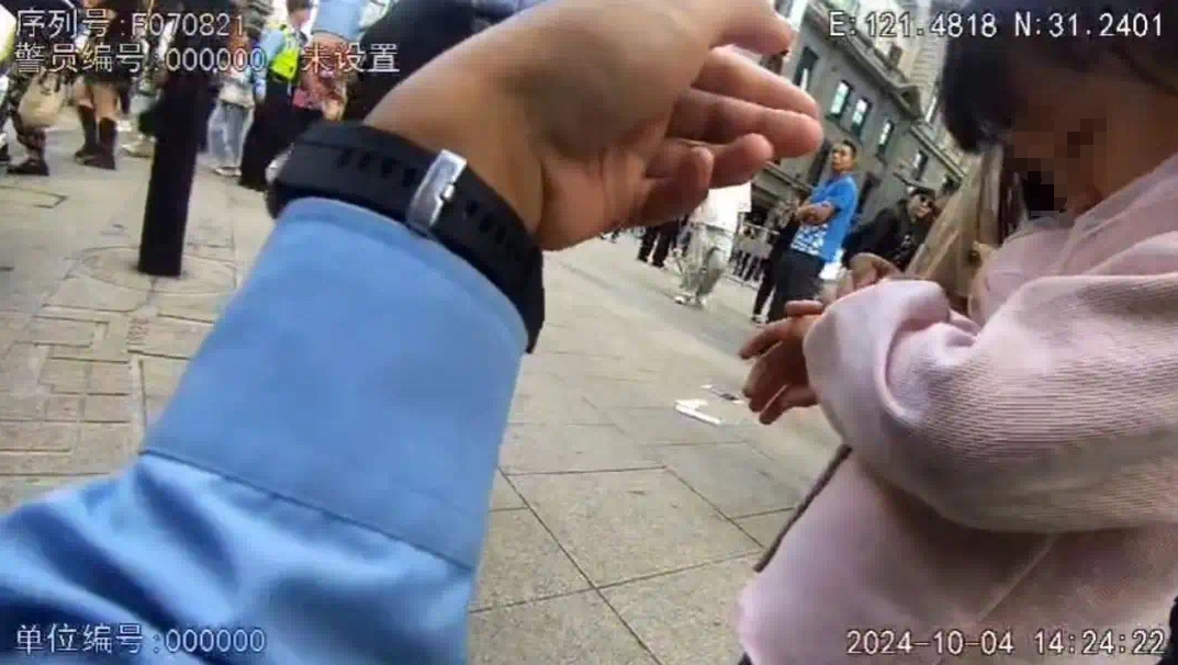 国庆假期期间,10月4日下午2:30,上海市南京东路江西中路人来人往。然而,在一片热闹中,一个小女孩独自在十字路口徘徊,看起来很紧张,好像和家人分开了。黄浦公安局步行街管理中队民警陆志伟及时发现了这一情况,并迅速行动起来。