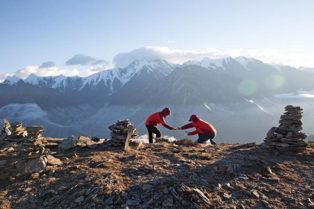 2017 年 11 月 23 日前,中国科学院贡嘎山生态系统观测试验站研究人员在四川贡嘎山西坡采集植物样本。新华社记者 金立旺 摄