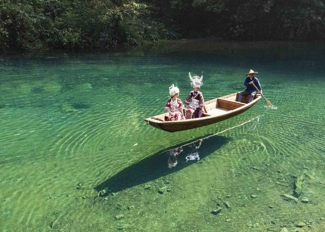 2022 年 3 月 15 日本游客在湖北省鹤峰县容美镇屏山村屏山旅游景区体验 “漂浮船”。新华社发布(? 摄)
