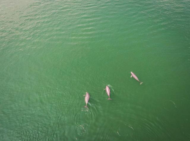 2021 年 5 月 11 日本,湖北宜昌,长江江豚在水中嬉戏。新华社记者 肖艺九 摄