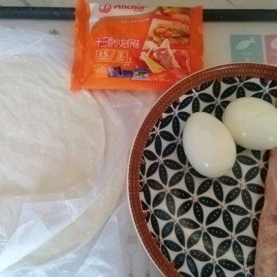 2、手抓饼两侧向中间折叠(我的蛋糕没有解冻,所以折叠的时候裂开了,大家可以把蛋糕稍微软一点再折叠),折叠后擀长,比培根长一点;