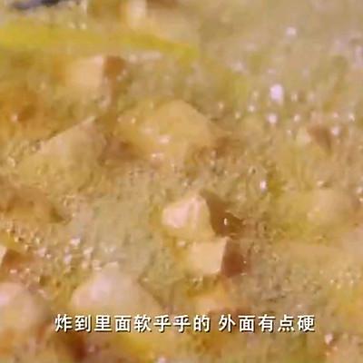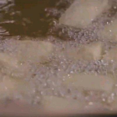9、炸至定型后,反复翻转,直到炸到里面软,外面有点硬(整个过程都需要大火)。