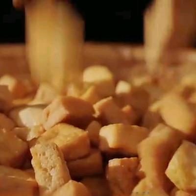 10、等待豆腐炸到金黄色,这样就可以捞出来。