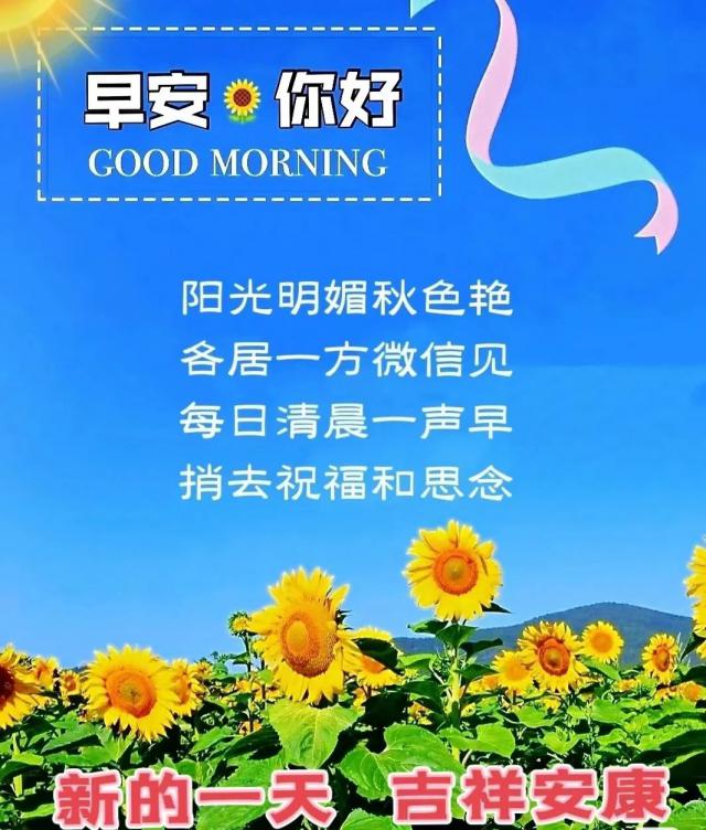 早上好,亲爱的朋友们!在这个美丽的早晨,愿你的微笑永远像阳光一样灿烂,愿你的努力像微风一样带来成功和成就!早晨的阳光迎接人们,愿你的心情像蓝天一样清晰!愿你的脚步像早晨的鸟一样轻盈,愿你的每一天都充满幸福和快乐!