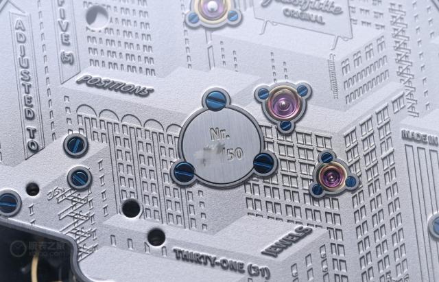取代过去偏心系列中常见的“格拉苏蒂图案”和“鱼鳞图案”,然后用一座城市高层建筑的微观场景覆盖整个运动。就像这块手表的名字——城市雕刻一样,整块手表的正面和背面都用激光雕刻出整个城市的立体场景缩影,层次感显著。