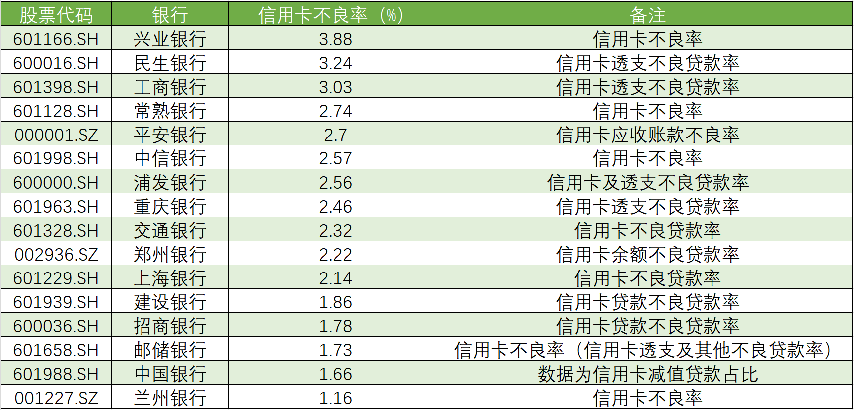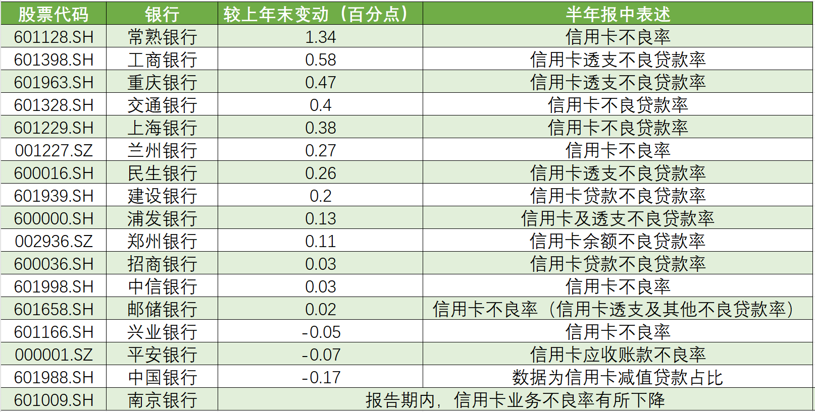 a股上市银行的中期报告已经全部发布。该报注意到,大部分银行在中期报告中披露信用卡不良率,信用卡不良率较去年底有所上升。