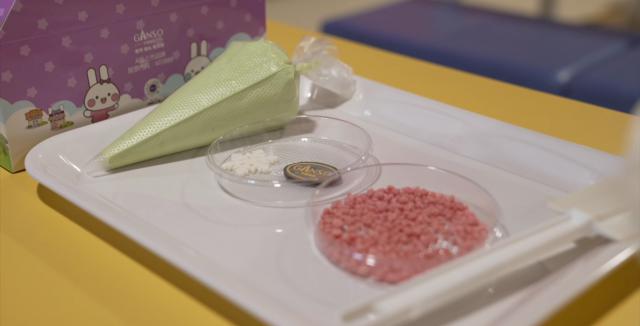 走进香气扑鼻的蛋糕制作车间,宝宝们跃跃欲试,洗手穿工作服,像样跟着老师了解奶油,学会抹蛋糕胚。