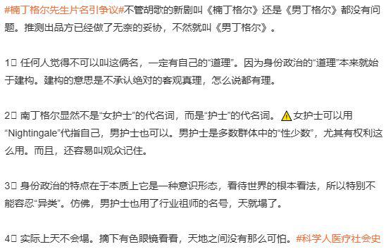 该剧的名字在海报上清晰地显示为“楠丁格尔先生”,有些网友可能没有什么感觉,我们举个例子:武大郎女人。
