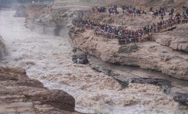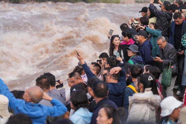 10 月 4 日本,游客们在黄河壶口飞瀑游玩。新华社记者 陈晔华 摄
