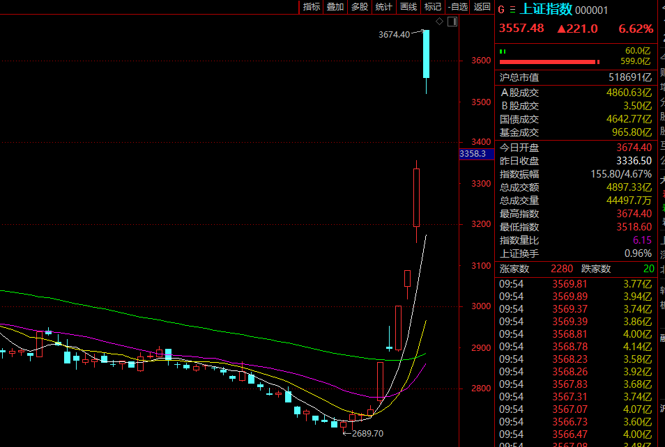 上午,a股大幅开盘后下跌。截至发稿时,上证指数上涨7%以上。截至9时52分,沪深股市成交额突破1万亿元,创下历史最快万亿纪录。