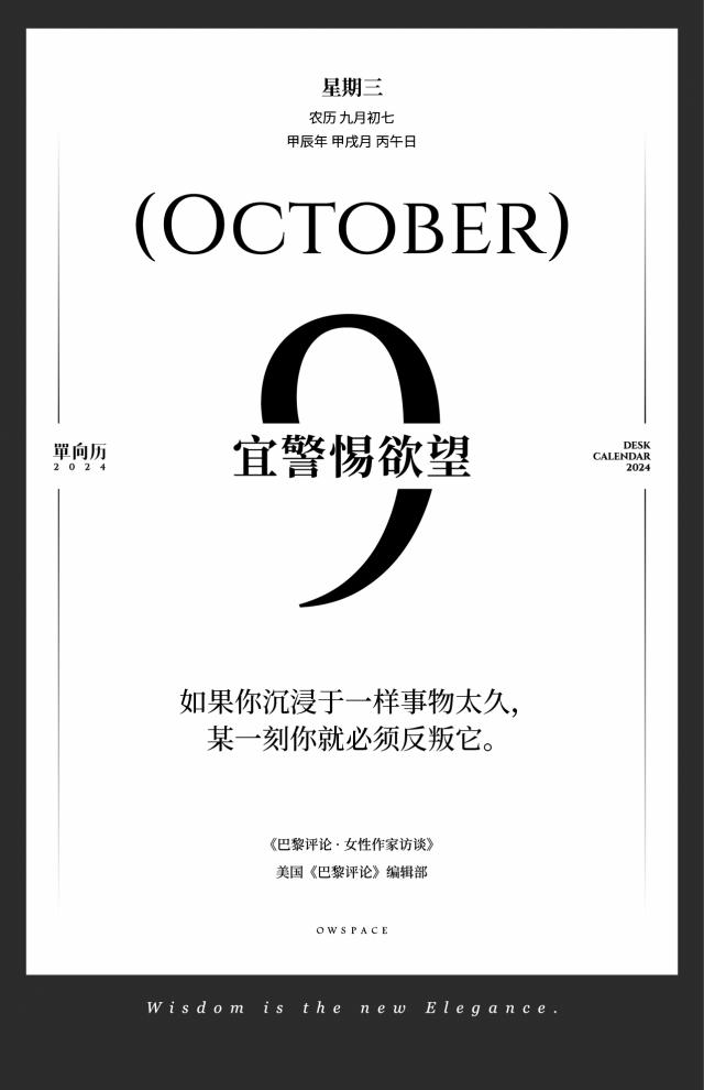 10 月 9 日,宜警觉欲望