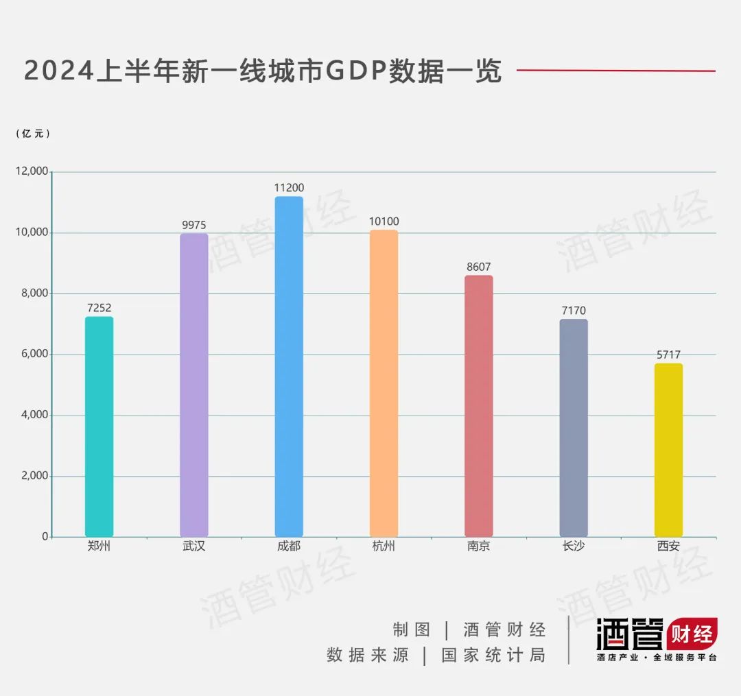 资料显示,上半年郑州GDP为7252亿元,武汉GDP为9975亿元,成都GDP为1.12万亿元,杭州GDP为1.01万亿元,南京GDP为8607亿元,长沙GDP为7170亿元,西安为5717亿元。
