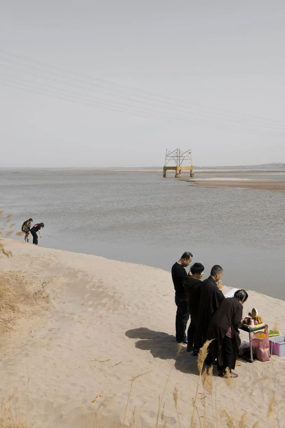 刘宏的新作《空渡》系列起源于她童年对黄河渡口的回忆。作为连接海峡两岸生活的纽带,从此海峡两岸渡口的移动对童年作者有着极大的吸引力,也代表了她年轻时世界的边缘。通过对童年记忆、景观和历史的密切关注,这组作品赋予了多层次的视觉语言。在渡口从记忆到衰落,直至关闭,基本功能的丧失使黄河岸成为一个巨大的剧院空间,各种各样的人和事在这里轮番上演。刘宏显然注意到了这一点,在她宏大而疏朗的镜头里,人和事就像水中的浮标,诱使我们游向他们,从一个游向另一个。散落的故事聚集在无限广阔的水界边缘,形成新的词语和情境。