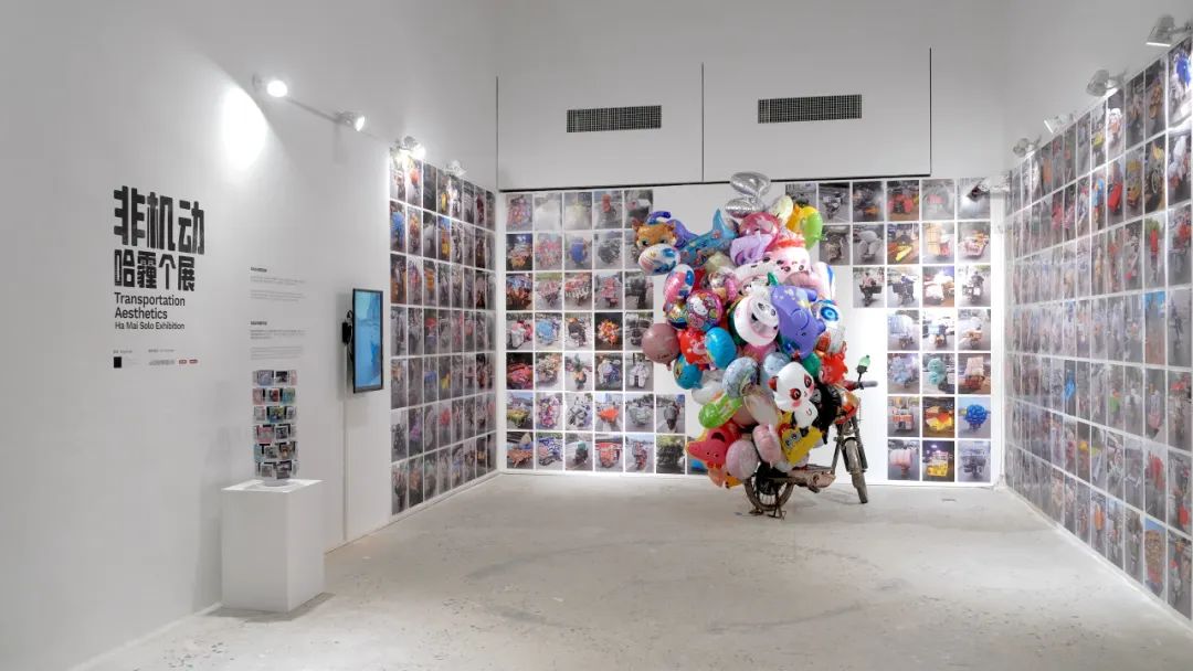 大家好,我是哈霾。这次在厦门三影堂的“非机动”展览中,我有幸在成都街头展出了三组非机动车作品。在这些作品中,我的主线作品《磨子桥》系列位于黑色主场。本系列采用中画幅数码相机,近距离闪光灯快拍所呈现的一种研磨式观看,用于同一路口的非机动车辆。《非机动车载货指南》和《非机动车美学手册》在与大厅相连的半开放明亮空间中呈现。《非机动车载货指南》是一套关于非机动车载货方式的收集呈现,作品衍生的现成产品和视频记录也放在现场。非机动车美学手册是一组为本次展览空间布局的作品,是对现成网络产品图像的再图像化。欢迎各位朋友前来参观展览。