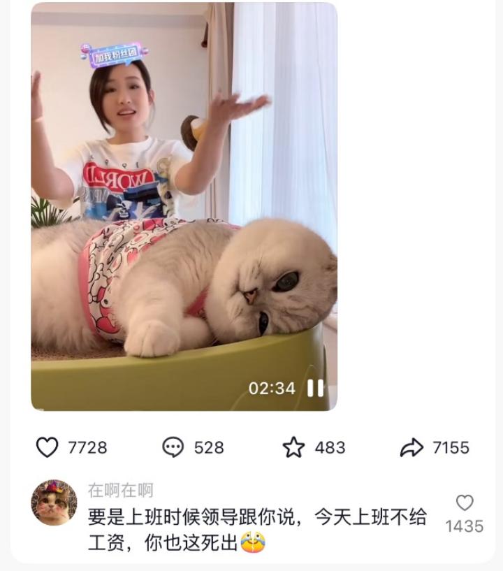 其实除了像董洁这类基于自身穿搭经验、观点进行分享的直播间,还出现了另一种更具创意、更“另类”的带货直播——账号“芬儿头是猫不是猪”,它开启宠物带货模式,名叫芬儿头的猫与酷似秦海璐的芬儿妈好似欢喜冤家,芬儿头为了猫粮冻干配合营业的场景吸引了众多网友关注,相关词条“秦海璐大战邪恶银渐层”也登上热榜。