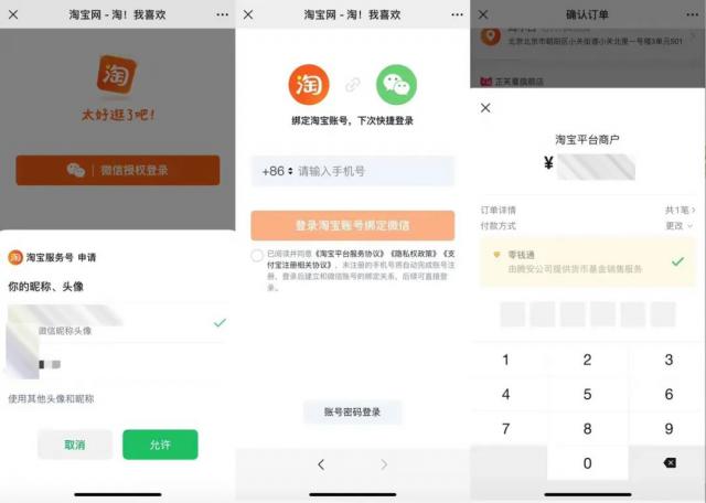 用户在微信端绑定淘宝账号后,可以实现正常浏览、添加购物车、支付功能。默认情况下,接收地址是淘宝自己设置的地址。而且微信绑定淘宝账号后,后续无需重复登录,直接点击连接即可使用,非常方便。但目前微信节点开通的淘宝只能使用微信支付,包括零钱、银行卡等。,而且还没有支持支付宝。