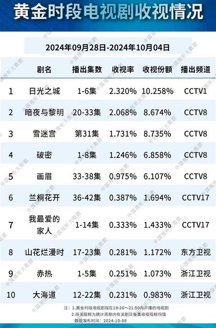 总局收视率:《大海道》倒数,《暗夜与黎明》第二,第一名非常新鲜。
